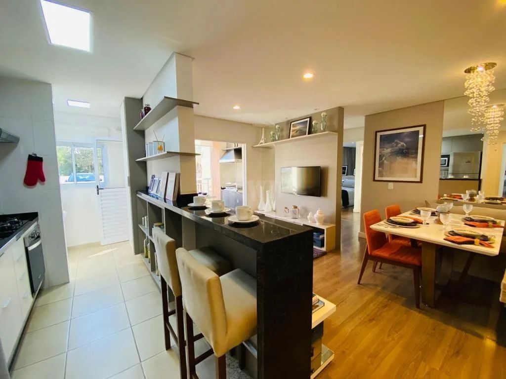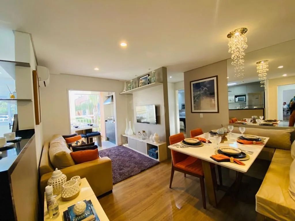 Apartamento de 63m², 2 Dormitórios sendo 1 suíte, 3 pontos de ar condicionado ( sala e quartos), varanda gourmet com churrasqueira à carvão e aquecimento à gás ( torneiras e chuveiros);