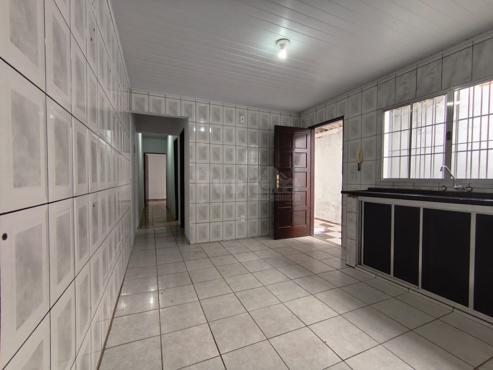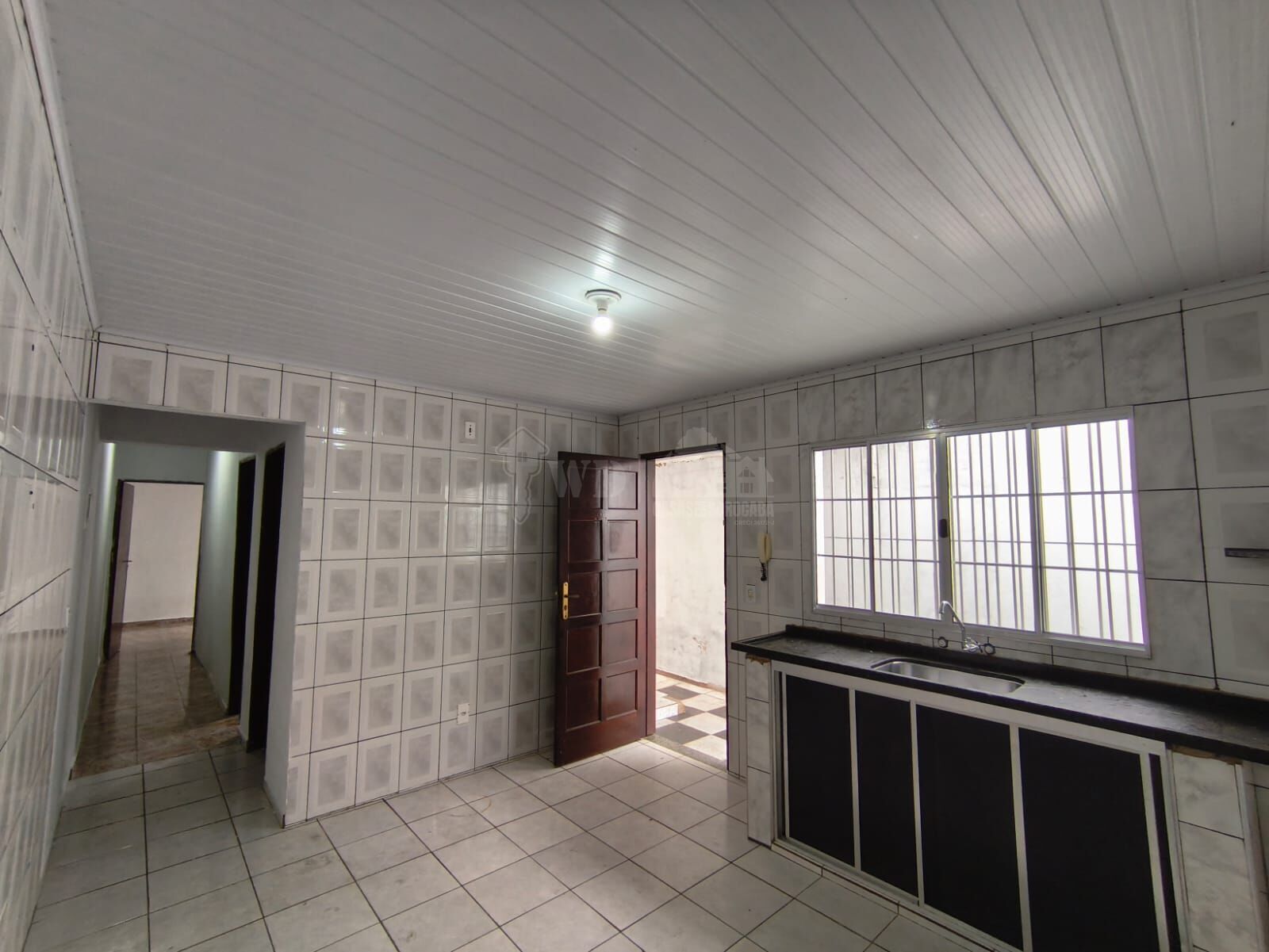 Cozinha grande com saída para o corredor lateral.