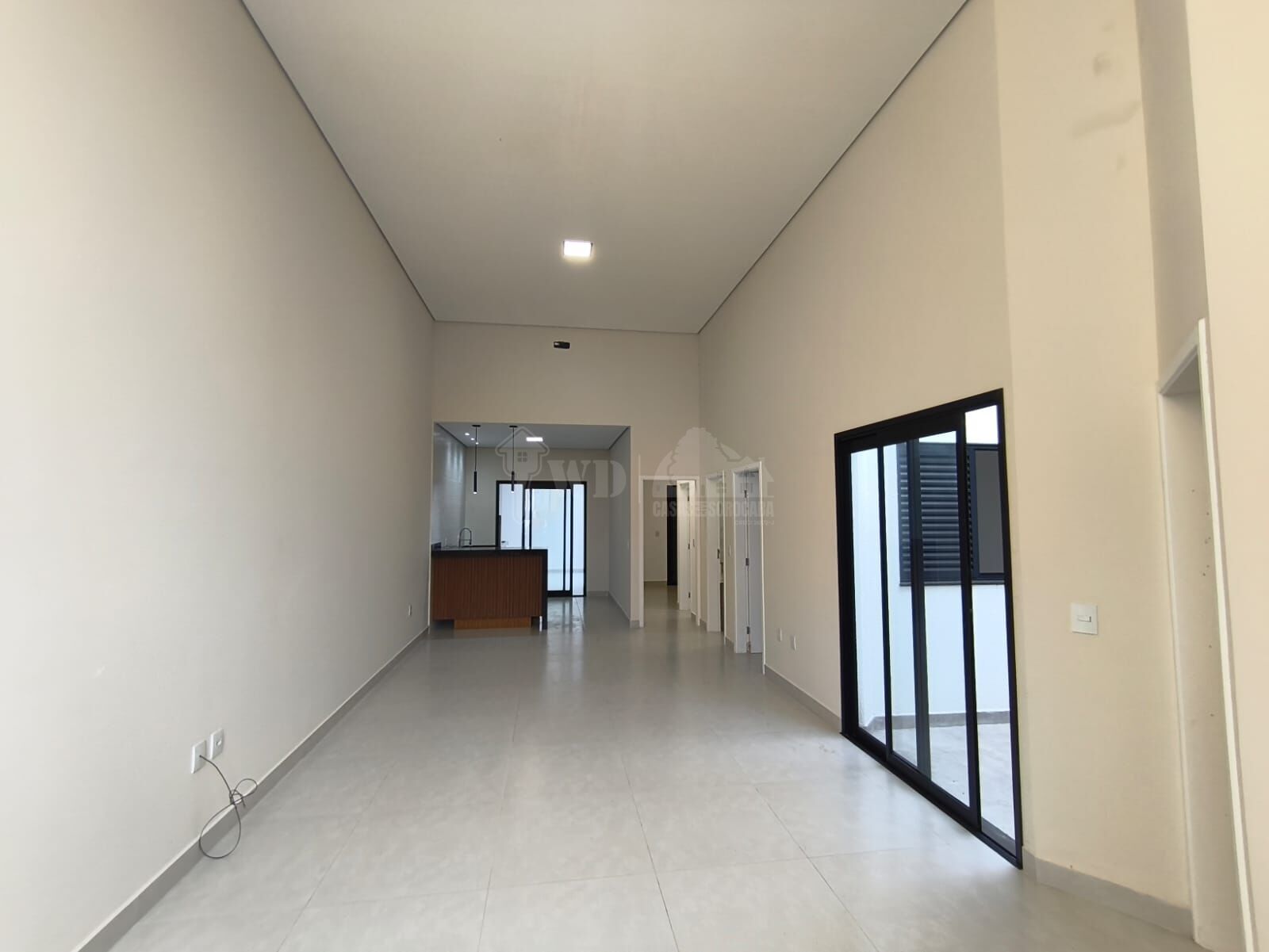 Sala com pé direito duplo , acabamento em gesso invertido .