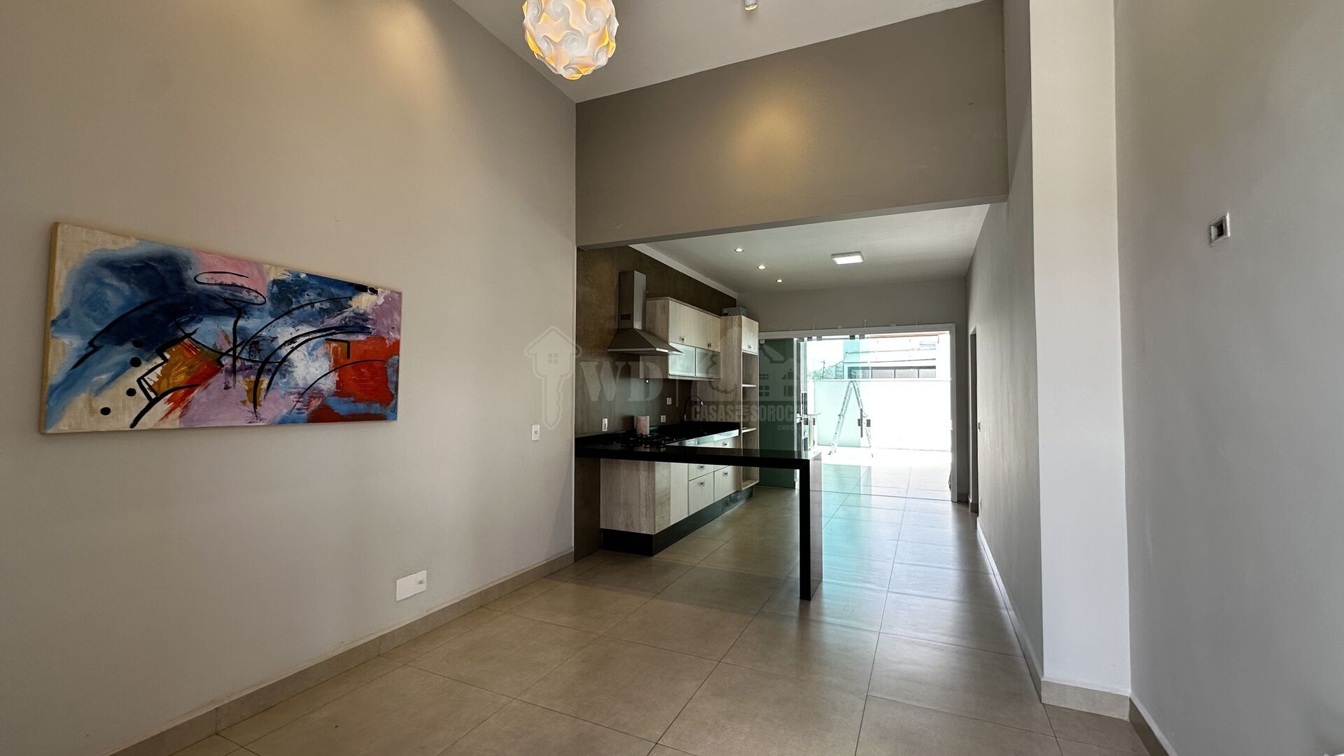 O imóvel conta com 2 dormitórios, sendo 1 suíte, sala com pé-direito alto, cozinha integrada ao espaço gourmet com churrasqueira e lavanderia coberta. A garagem possui cobertura para maior conforto.