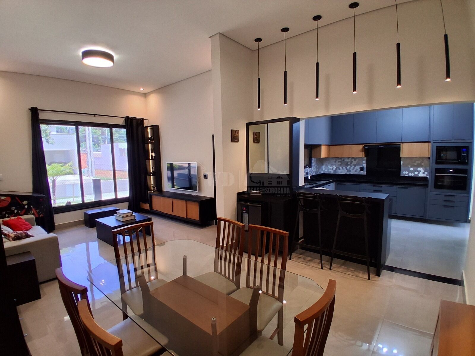 A casa conta com área de luz com teto retrátil, excelente projeto de iluminação, fechadura eletrônica e é rica em móveis planejados, além de eletrodomésticos novos de última geração.