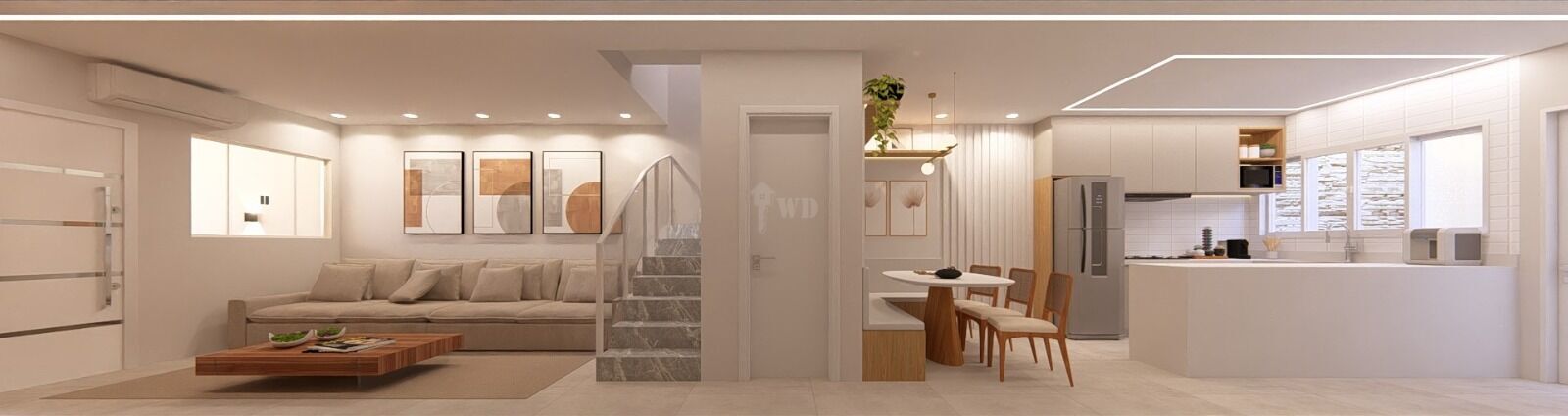 A residência será entregue com um padrão fino de acabamento e revestimento, iluminação, bancadas em granito, painel de tv (sala) em madeira, esquadrias e vidros (varanda e escada), louças e metais.
